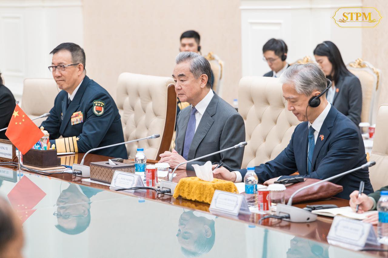 H.E. Wang Yi praised Cambodia’s rapid and dynamic development, congratulating Samdech Thipadei on leading the country to progress across multiple sectors. He highlighted the longstanding friendship between the two nations, describing it as having reached the level of an all-weather Cambodia-China community with a shared future in the new era.