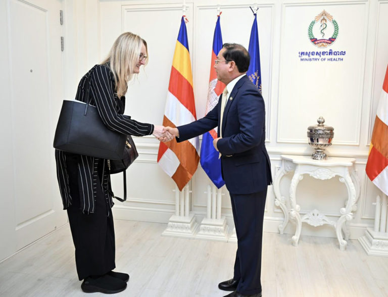 The commitment was highlighted during a courtesy call on Wednesday between Cambodian Health Minister H.E. Prof. Chheang Ra and a Global Fund delegation led by Country Team Manager Ms. Sylwia Murray at the Ministry’s headquarters.