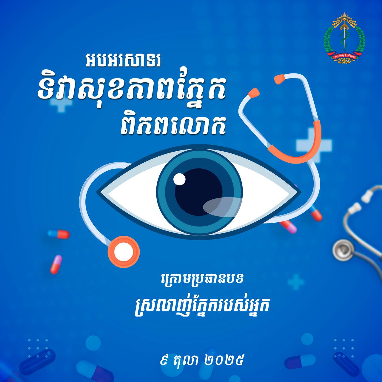 សារអបអរសាទរ ទិវាសុខភាពភ្នែកពិភពលោក ក្រសួងសុខាភិបាលអំពាវនាវរួមគ្នាទប់ស្កាត់ និងកាត់បន្ថយភាពពិការភ្នែក និងគំហើញចុះខ្សោយធ្ងន់ធ្ងរ ដែលបណ្តាលមកពីជំងឺទឹកនោមផ្អែម និងជំងឺឡើងសម្ពាធឈាម Posted on ថ្ងៃព្រហស្បតិ៍, 9 ខែតុលា, 2025ថ្ងៃព្រហស្បតិ៍, 9 ខែតុលា, 2025