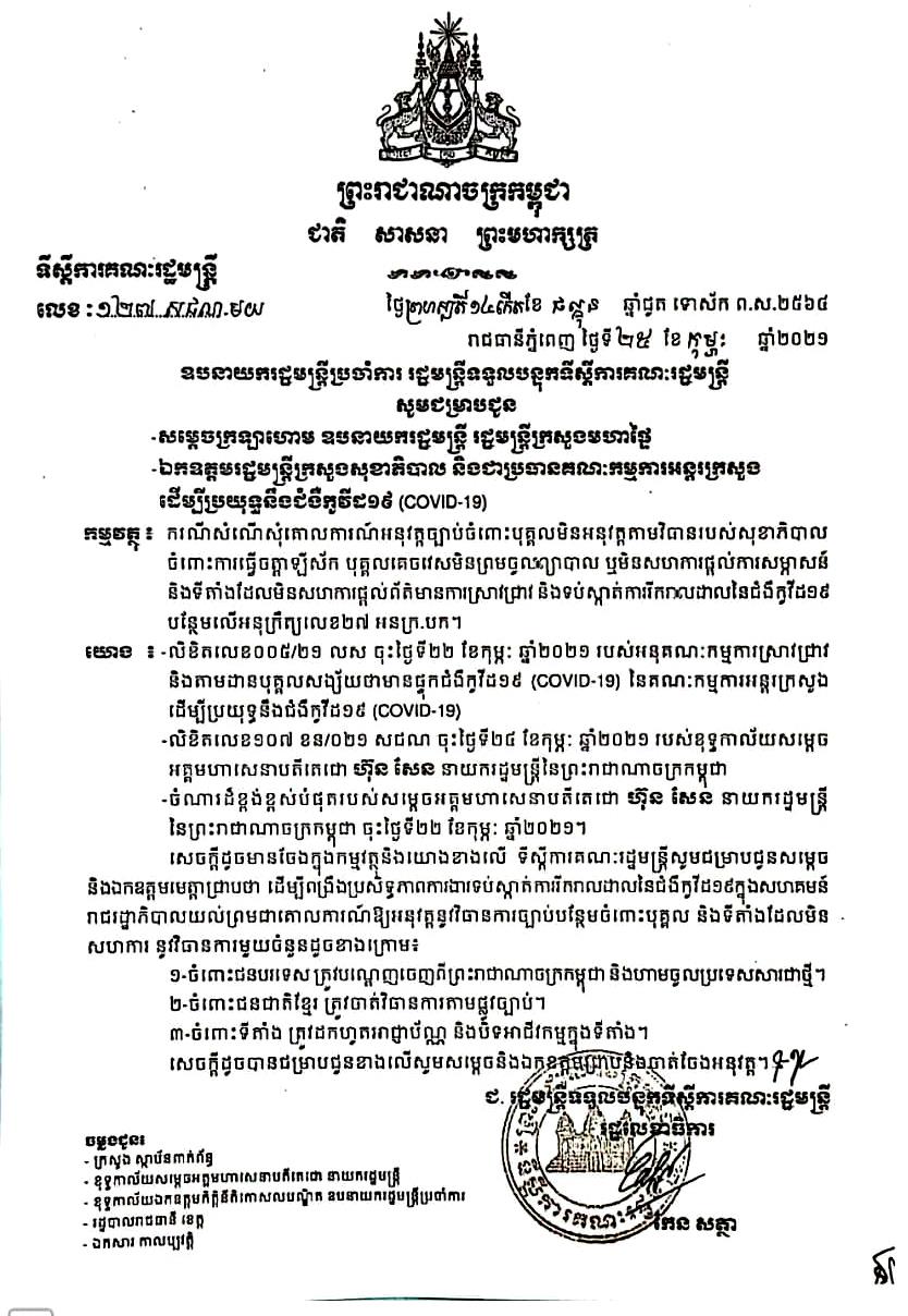 រាជរដ្ឋាភិបាល សម្រេចចេញវិធានការរឹតបន្ដឹងចំពោះបុគ្គល និងទីតាំងដែលមិនសហការពាក់ព័ន្ធករណីជំងឺកូវីដ-១៩ ជនបរទេសត្រូវបណ្តេញចេញពីប្រទេស និងទីតាំងត្រូវបិទចោលតែម្តង Posted on ថ្ងៃសុក្រ, 26 ខែកុម្ភៈ, 2021ថ្ងៃសុក្រ, 26 ខែកុម្ភៈ, 2021