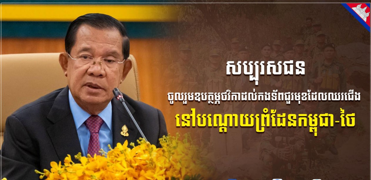 សម្តេចវិបុលសេនាភក្តី សាយ ឈុំ និងលោកជំទាវ ប្រកាសចូលរួមឧបត្ថម្ភថវិកា ចំនួន២ម៉ឺនដុល្លារ ជួយដល់កងទ័ពជួរមុខកម្ពុជា និងជនភៀសសឹក តាមរយៈសម្តេចតេជោ ហ៊ុន សែន Posted on ថ្ងៃព្រហស្បតិ៍, 18 ខែធ្នូ, 2025ថ្ងៃព្រហស្បតិ៍, 18 ខែធ្នូ, 2025