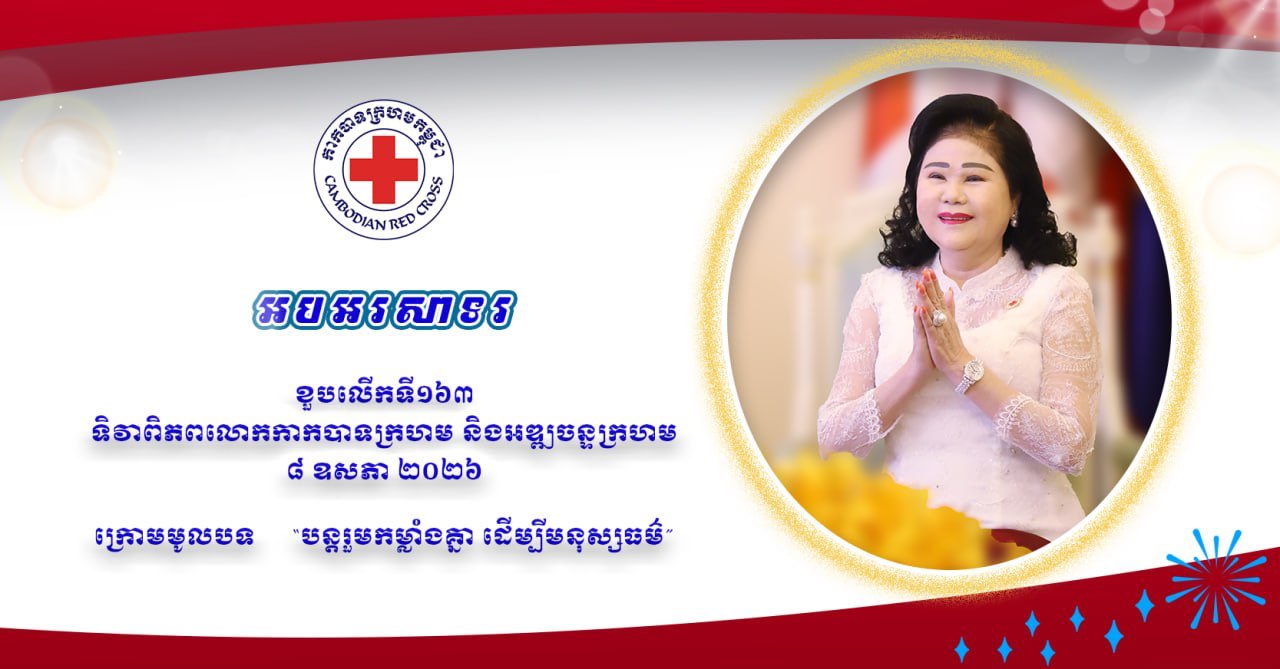 ឯកឧត្តមសាស្ត្រាចារ្យ ឈាង រ៉ា រដ្ឋមន្ត្រីក្រសួងសុខាភិបាល និងលោកជំទាវ គីម សុខលាភ ឧបត្ថម្ភថវិកាចំនួន ១ម៉ឺនដុល្លារ ជូនកាកបាទក្រហមកម្ពុជា Posted on ថ្ងៃសុក្រ, 13 ខែមីនា, 2026ថ្ងៃសុក្រ, 13 ខែមីនា, 2026