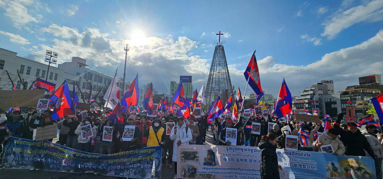 សហគមន៍ខ្មែរនៅកូរ៉េខាងត្បូងជាង ២ពាន់នាក់ ប្រមូលផ្តុំគ្នាធ្វើបាតុកម្មសម្តែងមតិថ្កោលទោសការឈ្លានពានយ៉ាងសាហាវព្រៃផ្សៃរបស់កងទ័ពថៃ មកលើដែនអធិបតេយ្យកម្ពុជា Posted on ថ្ងៃចន្ទ, 15 ខែធ្នូ, 2025ថ្ងៃចន្ទ, 15 ខែធ្នូ, 2025