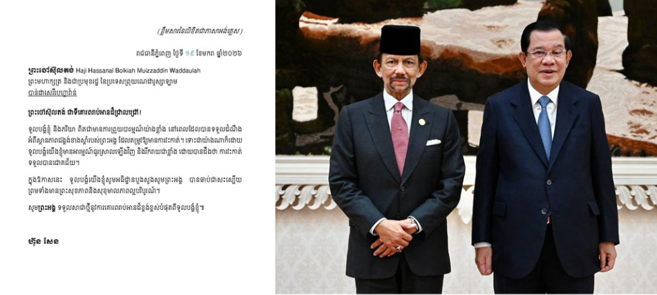 សម្តេចតេជោ ហ៊ុន សែន ផ្ញើសារថ្វាយ ព្រះចៅស៊ុលតង់ បួងសួងសូមព្រះអង្គ បានឆាប់ជាសះស្បើយ ព្រមទាំងមានព្រះសុខភាពនិងសុខុមាលភាពល្អបរិបូរណ៍ Posted on ថ្ងៃចន្ទ, 19 ខែមករា, 2026ថ្ងៃចន្ទ, 19 ខែមករា, 2026