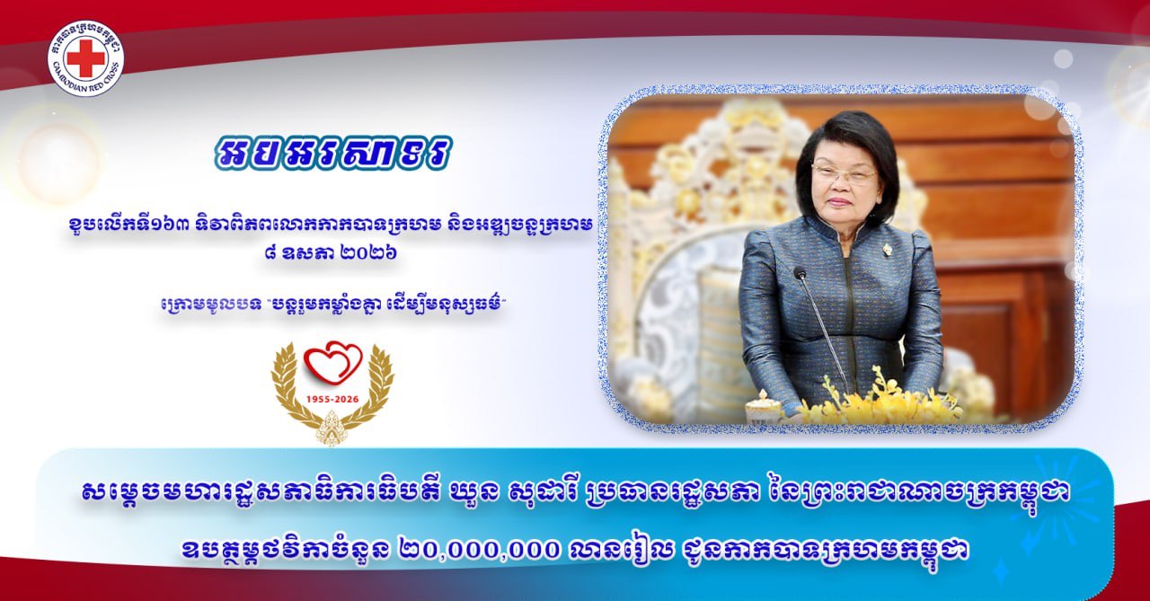 សម្តេចបវរធិបតី ហ៊ុន ម៉ាណែត ចេញសារលិខិតក្នុងឱកាស ប្រារព្ធទិវាពិភពលោកកំចាត់រោគរបេង ក្រោមប្រធានបទ៖ «មែនហើយ ! យើងអាចបញ្ចប់ជំងឺរបេង៖ ដឹកនាំដោយប្រទេសជាតិ ជំរុញដោយប្រជាជន» Posted on ថ្ងៃចន្ទ, 23 ខែមីនា, 2026ថ្ងៃចន្ទ, 23 ខែមីនា, 2026