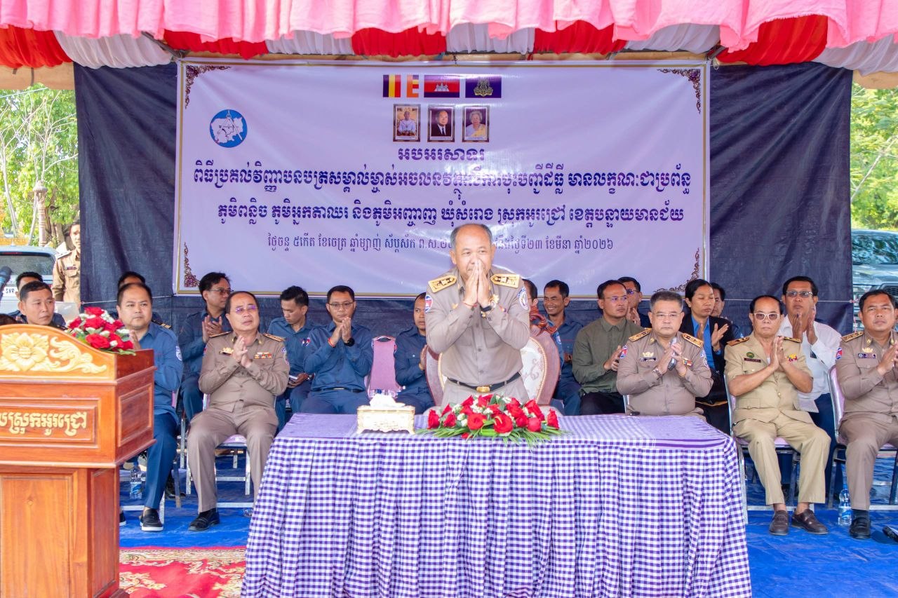 អភិបាលខេត្តបន្ទាយមានជ័យ ប្រគល់វិញ្ញាបនបត្រសម្គាល់ម្ចាស់អចលនវត្ថុ ជូនដល់ប្រជាពលរដ្ឋ៣ភូមិជាង២ពាន់បណ្ណ ក្នុងស្រុកអូរជ្រៅ Posted on ថ្ងៃចន្ទ, 23 ខែមីនា, 2026ថ្ងៃចន្ទ, 23 ខែមីនា, 2026