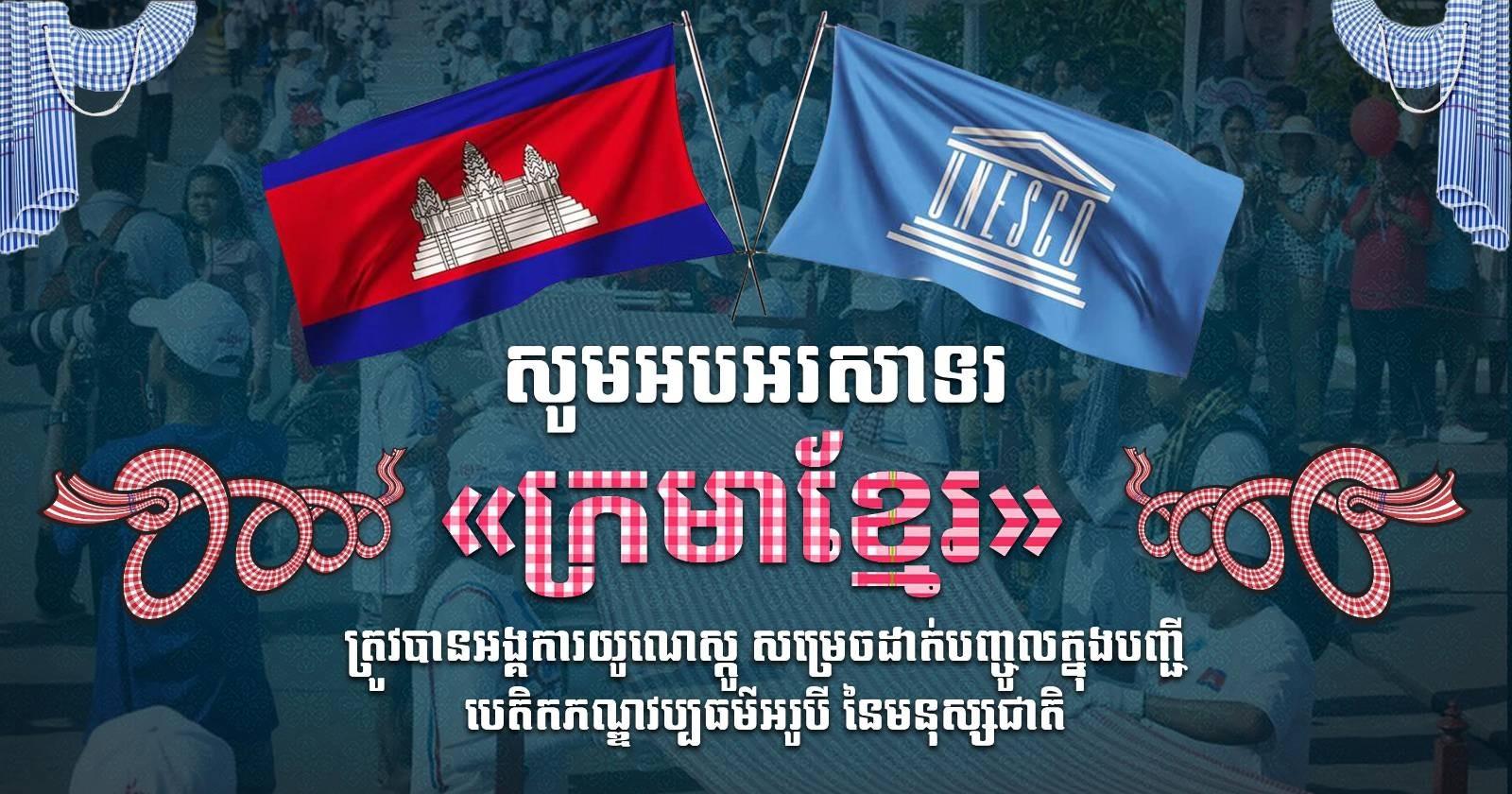 អបអរសាទរ ខួបលើកទី១ ក្រមាខ្មែរ ត្រូវបានដាក់បញ្ចូលក្នុងបញ្ជីតំណាងនៃបេតិកភណ្ឌវប្បធម៌អរូបីនៃមនុស្សជាតិ របស់អង្គការយូណេស្កូ Posted on ថ្ងៃព្រហស្បតិ៍, 4 ខែធ្នូ, 2025ថ្ងៃព្រហស្បតិ៍, 4 ខែធ្នូ, 2025