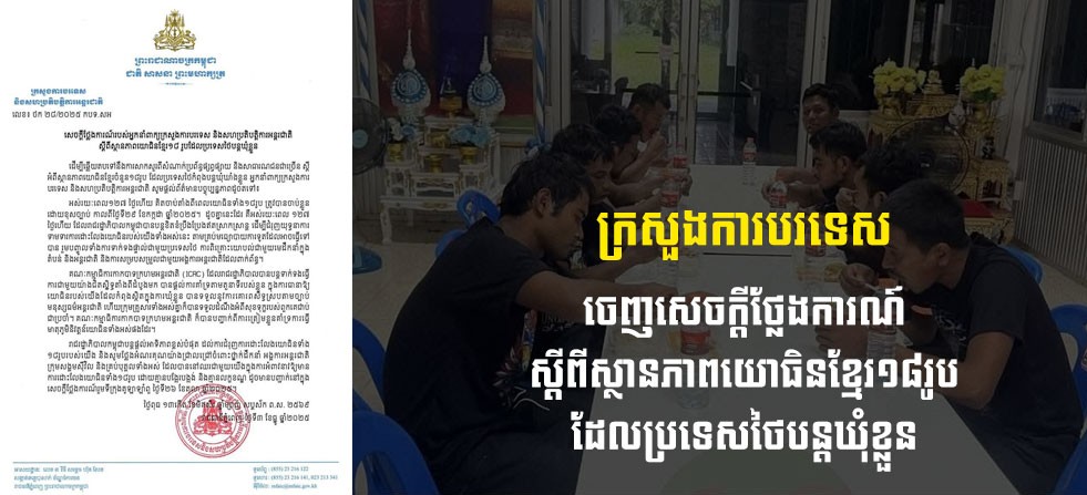 ក្រសួងការបរទេស ចេញសេចក្ដីថ្លែងការណ៍ ស្តីពីស្ថានភាពយោធិនខ្មែរ១៨ រូបដែលប្រទេសថៃបន្តឃុំខ្លួន Posted on ថ្ងៃព្រហស្បតិ៍, 4 ខែធ្នូ, 2025ថ្ងៃព្រហស្បតិ៍, 4 ខែធ្នូ, 2025