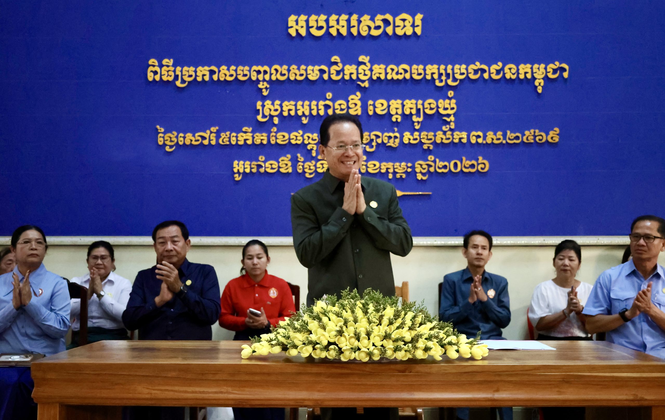 ឯកឧត្ដមបណ្ឌិត អ៊ាង សុផល្លែត អញ្ជើញជាអធិបតីក្នុងពិធីប្រកាសបញ្ចូលសមាជិកថ្មី គណបក្សប្រជាជនកម្ពុជាចំនួន៥៦១នាក់ ប្រចាំឆមាសទី២ ឆ្នាំ២០២៥ នៅស្រុកអូររាំងឪ ខេត្តត្បូងឃ្មុំ Posted on ថ្ងៃសៅរ៍, 21 ខែកុម្ភៈ, 2026ថ្ងៃសៅរ៍, 21 ខែកុម្ភៈ, 2026