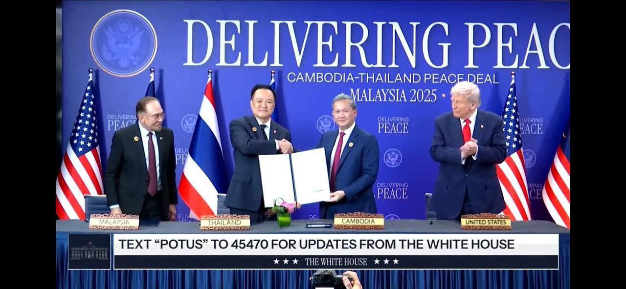 សម្ដេចធិបតី ហ៊ុន ម៉ាណែត និងប្រធានាធិបតីសហរដ្ឋអាមេរិក ចុះហត្ថលេខាលើកិច្ចព្រមព្រៀងពាណិជ្ជកម្មបដិការ ដេីម្បីពង្រឹង និងពង្រីកពាណិជ្ជកម្មទ្វេភាគី Posted on ថ្ងៃអាទិត្យ, 26 ខែតុលា, 2025ថ្ងៃអាទិត្យ, 26 ខែតុលា, 2025