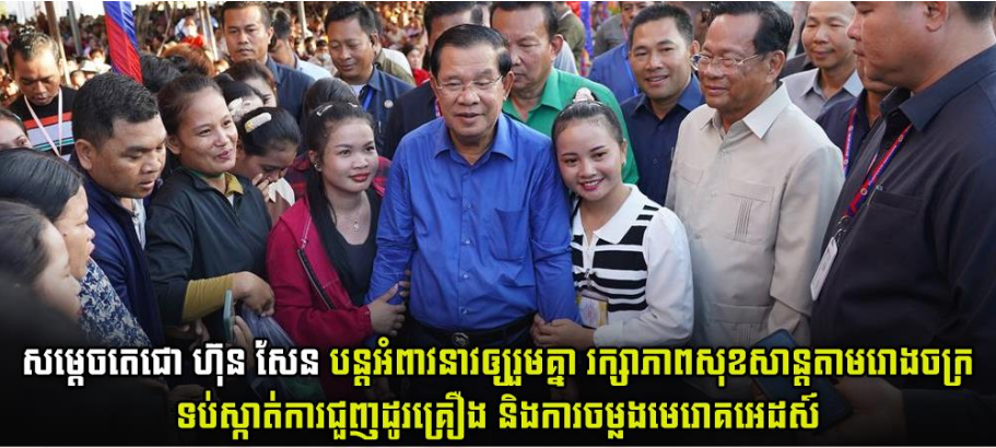 សម្តេចតេជោ ហ៊ុន សែន បន្តអំពាវនាវឲ្យរួមគ្នា រក្សាភាពសុខសាន្តតាមរោងចក្រ ទប់ស្កាត់ការជួញដូរគ្រឿង និងការចម្លងមេរោគអេដស៍ Posted on ថ្ងៃព្រហស្បតិ៍, 29 ខែមិថុនា, 2023ថ្ងៃព្រហស្បតិ៍, 29 ខែមិថុនា, 2023