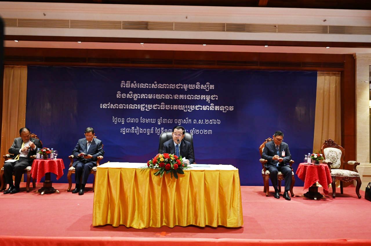 សម្តេចតេជោ ហ៊ុន សែន អញ្ជើញជួបសំណេះសំណាលជាមួយនិស្សិត សិក្ខាកាមយោធា និងនគរបាលកម្ពុជា នៅប្រទេសឡាវ Posted on ថ្ងៃចន្ទ, 13 ខែកុម្ភៈ, 2023ថ្ងៃចន្ទ, 13 ខែកុម្ភៈ, 2023