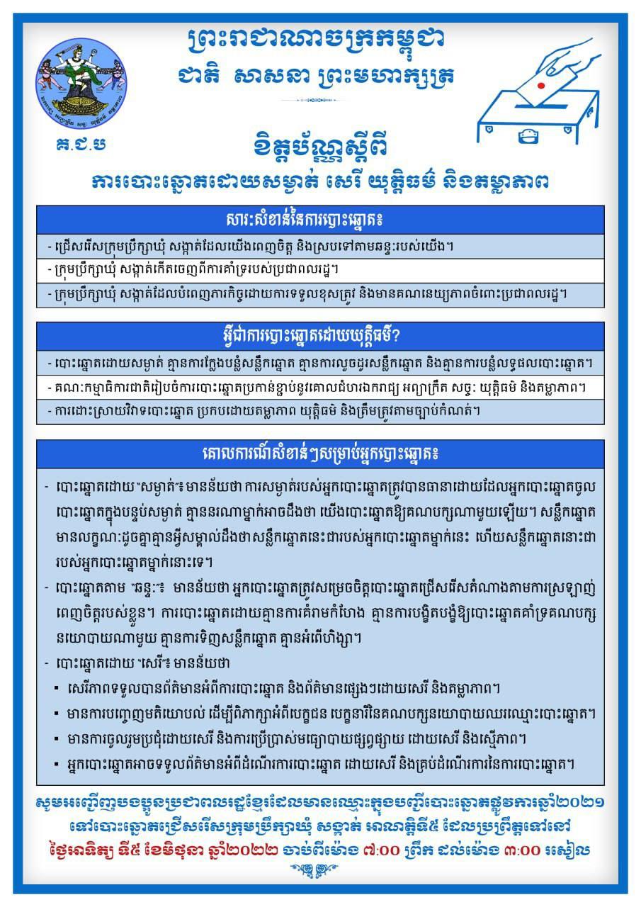 ការបោះឆ្នោតក្រុមប្រឹក្សាឃុំ-សង្កាត់ អាណត្តិទី៥ នឹងធ្វើឡើងថ្ងៃទី០៥ ខែមិថុនា ! តើប្រជាពលរដ្ឋត្រូវមានអ្វីខ្លះ ដើម្បីបោះឆ្នោតបាន? Posted on ថ្ងៃពុធ, 1 ខែមិថុនា, 2022ថ្ងៃពុធ, 1 ខែមិថុនា, 2022