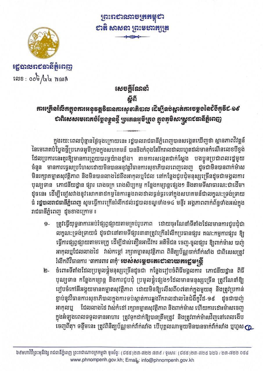 រដ្ឋបាលរាជធានីភ្នំពេញ ក្រើនរំលឹកដល់ប្រជាពលរដ្ឋពីការអនុវត្តវិធានការសុខាភិបាល ដើម្បីទប់ស្កាត់ការចម្លងជំងឺកូវីដ១៩ ពិសេសប្រភេទអូមីក្រុង Posted on ថ្ងៃព្រហស្បតិ៍, 10 ខែកុម្ភៈ, 2022ថ្ងៃព្រហស្បតិ៍, 10 ខែកុម្ភៈ, 2022
