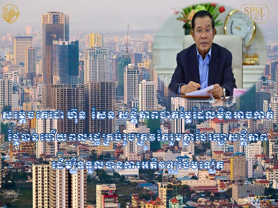 សម្តេចតេជោ ហ៊ុន សែន៖ សន្តិភាពជាតម្លៃដែលមិនអាចកាត់ថ្លៃបាន ហើយពលរដ្ឋគ្រប់រូបត្រូវតែរួមគ្នាថែរក្សាការពារសន្តិភាព ដើម្បីទទួលបានការអភិវឌ្ឍថែមទៀត Posted on ថ្ងៃព្រហស្បតិ៍, 27 ខែមករា, 2022ថ្ងៃព្រហស្បតិ៍, 27 ខែមករា, 2022