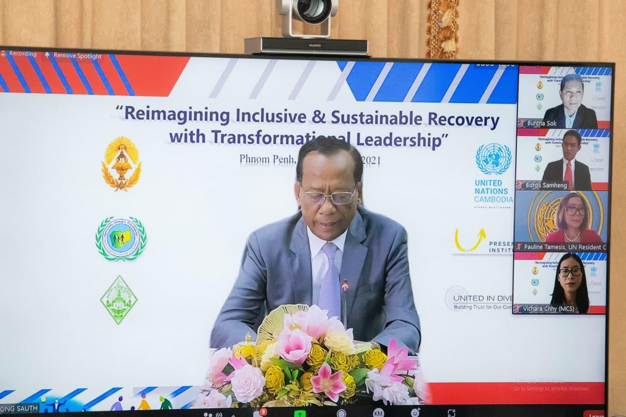 រដ្ឋមន្រ្តីសង្គមកិច្ច ដឹកនាំសិក្ខាសាលាស្តីពី «ការគិតឡើងវិញជាបរិយាប័ន្ន និងការងើបឡើងវិញប្រកបដោយនិរន្តរភាព ជាមួយនឹងភាពជាអ្នកដឹកនាំការផ្លាស់ប្តូរ» តាមប្រព័ន្ធវីដេអូ Posted on ថ្ងៃព្រហស្បតិ៍, 9 ខែកញ្ញា, 2021ថ្ងៃព្រហស្បតិ៍, 9 ខែកញ្ញា, 2021